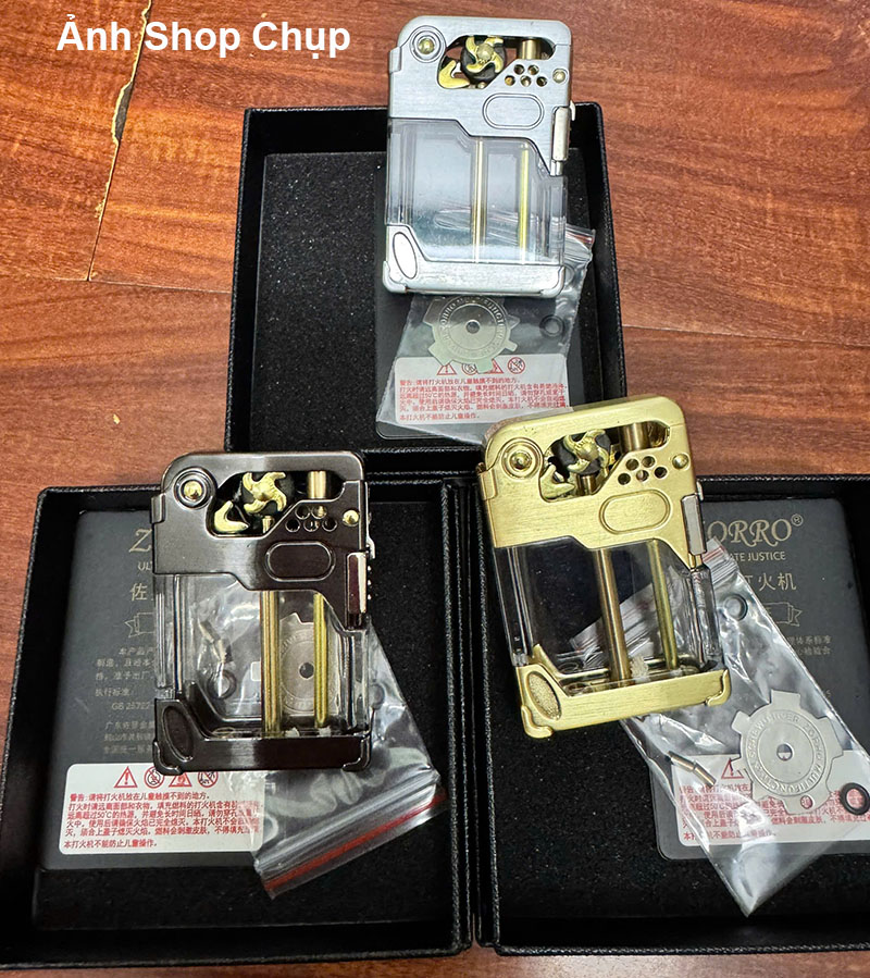 Sản phẩm bao gồm: 1 bật lửa + hộp đựng. Tặng kèm phụ kiện: Dụng cụ chỉnh to nhỏ, zoang và đá thay thế