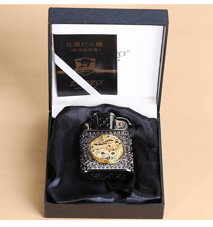 Bộ sản phẩm bao gồm: 1 bật lửa, 1 bộ hộp giấy tờ zorro
