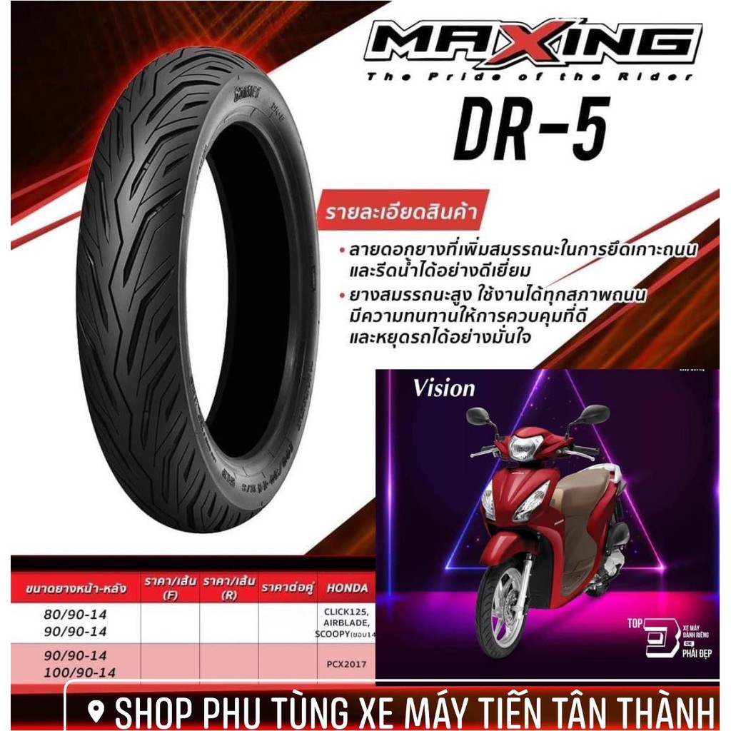 HÀNG NHẬP KHẨU 100 % THAILANK 🎖Vỏ Thái IRC Dòng MAXING Kiểu Gai DR-5, đây là Phân Phúc Đặc Biệt của IRC THAILAND. ✔Mẫu Gai CITY thế hệ mới bám đường cực tốt phù hợp cho mọi điều kiện thời tiết khô ráo hay ẩm ướt. ✔Hợp chất cao su đặc biệt cho những quảng đường dài và tốc độ cao. ➡Giá Size: ▪80/90-14 T/L ➡ 510,000đ/cái (AB125 / CLICK / VARIO/ VISON / MIO125 / ....) PHÍA TRƯỚC ▪90/90-14 T/L ➡ 570,000đ/cái (AB125 / CLICK / VARIO / VISON / MIO125 / ....) PHÍA SAU Thời gian vận chuyển tới tay khách hàng: - Nội thành TPHCM: Từ 1-2 ngày (tính kể từng ngày giao hàng) - Khu vực miền Nam: từ 1-3 ngày (tính kể từng ngày giao hàng) - Khu vực miền Trung: từ 3-6 ngày (tính kể từng ngày giao hàng) - Khu vực miền Bắc: từ 3-7 ngày (tính kể từng ngày giao hàng) ⛔️⛔️⛔️ Quy định đổi trả: Shop sẵn sàng đổi sản phẩm hoặc hoàn tiền cho khách với lí do:( quay video KHI KHUI KIỆN HÀNG) CO TEM NEM PHONG đồ chơi xe máy nhập khẩu 0902.687080-0908.060007 Kinh doanh tất cả mặt hàng về xe !!! phụ tùng nhập khẩu chính ngạch . những thương hiệu nổi tiếng về mặt hàng đồ chơi xe máy. phân phối sản phẩm sỉ và lẻ toàn quốc #UMA#RCB#KYT#ÊXCELTRF#WF#BINU#CAMEL#TA RACHING#ATE #NCY #T-PRO RACHING #CRG #NITRON #YCS #BREMBO #DOMINO #FANDO #ANCHOR #LEOVINCE #AHM #WRX TTT #RRGS #KINGDARG APITECK #ÂRACER #CNC #KINGSPEED #YSS #BARRATECK #GTR #RIROMA #MEGACOOL #MOTUL #REDTUL #SPAYKING #DNA #K&N #X1R #SPS #IRC