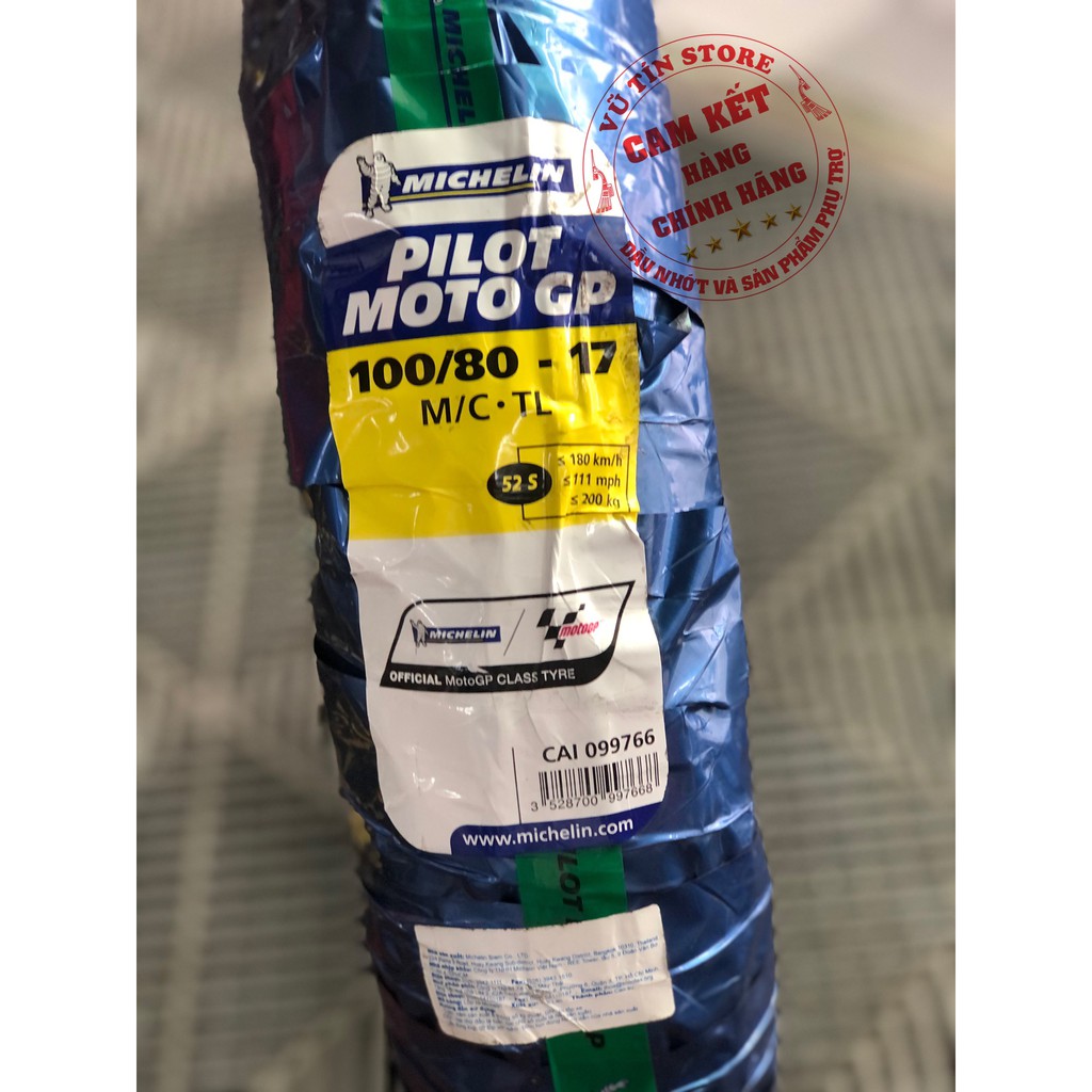 Vỏ xe Michelin Pilot Moto GP 100/80-17 Vỏ xe Michelin Pilot Moto GP 100/80-17 được sản xuất tại nhà máy chính ở Thái Lan của tập đoàn vỏ xe Michelin nổi tiếng toàn Thế Giới đến từ nước Pháp. Trung Tâm Vỏ Xe Chính Hãng nhận phân phối và kinh doanh mặt hàng vỏ xe máy Michelin Pilot Moto GP 100/80-17 chính hiệu được nhập khẩu trực tiếp từ nhà máy Michelin đặt tại Thái Lan. Đây là loại vỏ sau dùng cho các dòng xe Exciter 2011, 2012 muốn đi vỏ lớn hay cũng có thể phù hợp với mọi dòng xe số phổ thông muốn đi vỏ lớn.