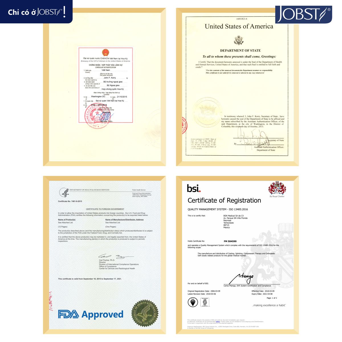 - JOBST là dòng vớ y khoa cao cấp duy nhất hiện nay trên thị trường đáp ứng đúng tiêu chuẩn áp lực điều trị suy giãn tĩnh mạch được qui định nghiêm ngặt bởi cơ quan y tế Hoa Kỳ.