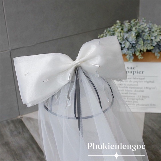 Giới thiệu Voan cài tóc cô dâu chiếc nơ xinh
