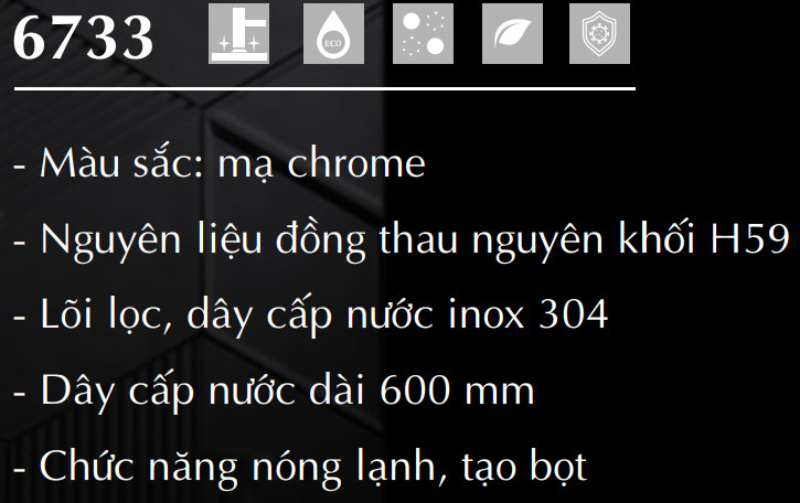 Sản phẩm được làm từ chất liệu đồng thau H59 nguyên khối cao cấp cùng nhiều tính năng vượt trội như hệ thống dòng chảy nóng lạnh tùy chỉnh và chức năng tạo bọt.