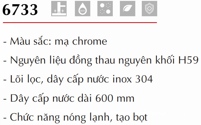 Sản phẩm được làm từ chất liệu đồng thau H59 nguyên khối cao cấp cùng nhiều tính năng vượt trội như hệ thống dòng chảy nóng lạnh tùy chỉnh và chức năng tạo bọt.