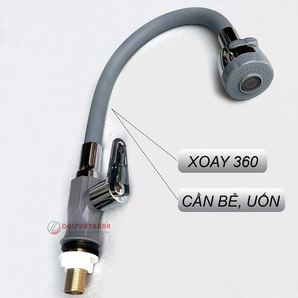 Mẫu 2: VN96 Xanh: Thân vòi xoay 360 (chỉ xoay được, không uốn dẻo được), lõi ống cấp Đồng thau