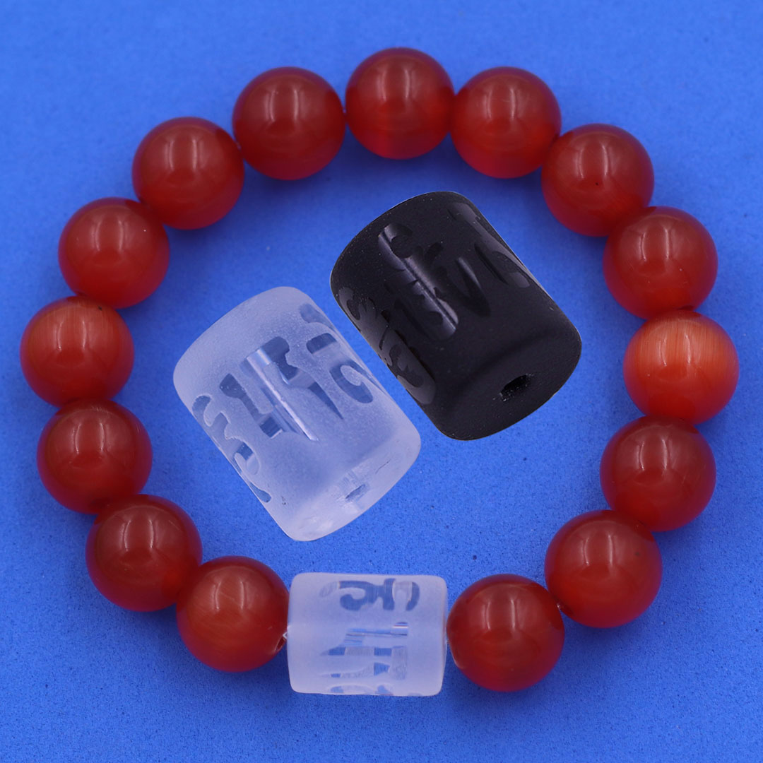 Thông tin sản phẩm | Vòng chuỗi đeo tay đá mắt mèo (đỏ) charm lục tự Đại minh chân ngôn, 10 ly, Om Mani Padme Hūm, Chân ngôn Lục tự |