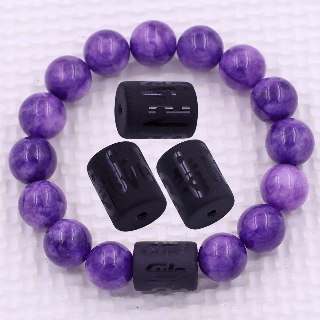 Thông tin sản phẩm | Vòng chuỗi đeo tay đá ngọc tủy tím charm lục tự Đại minh chân ngôn, 10 ly, Om Mani Padme Hūm, Chân ngôn Lục tự |