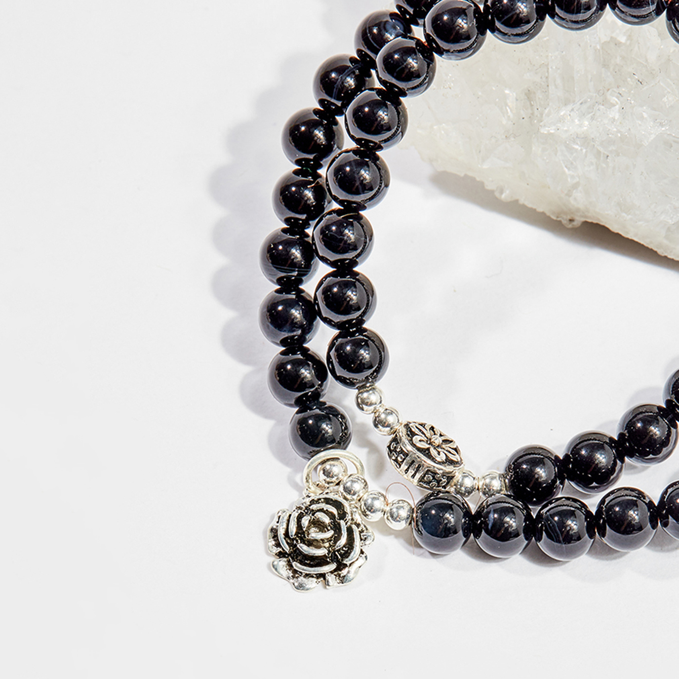 Giới thiệu Vòng chuỗi hạt đeo tay 2 line đá obsidian phối charm 6mm mệnh thủy,mộc - Ngọc Quý Gemstones