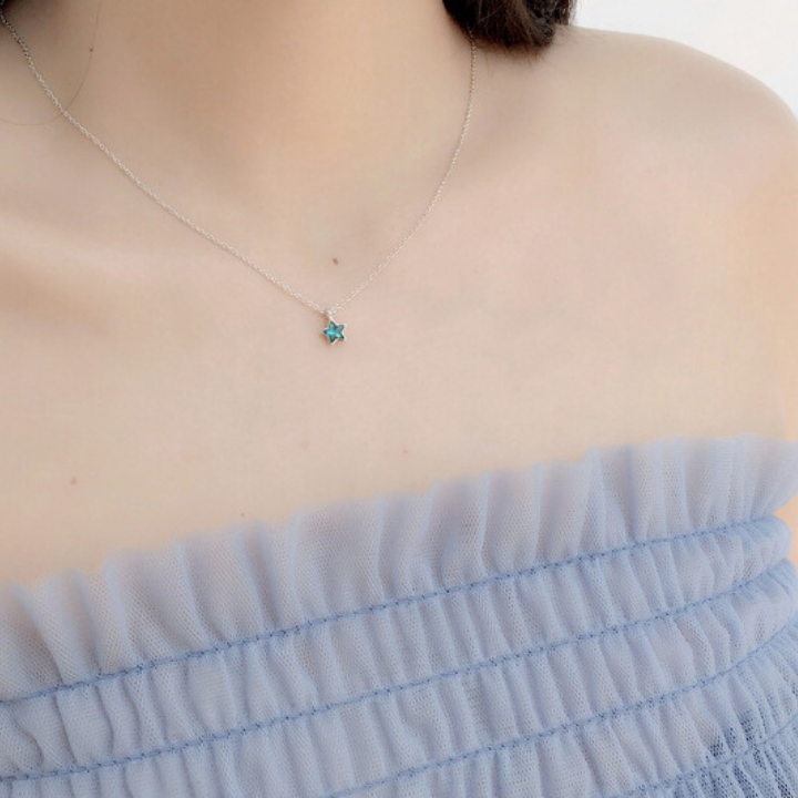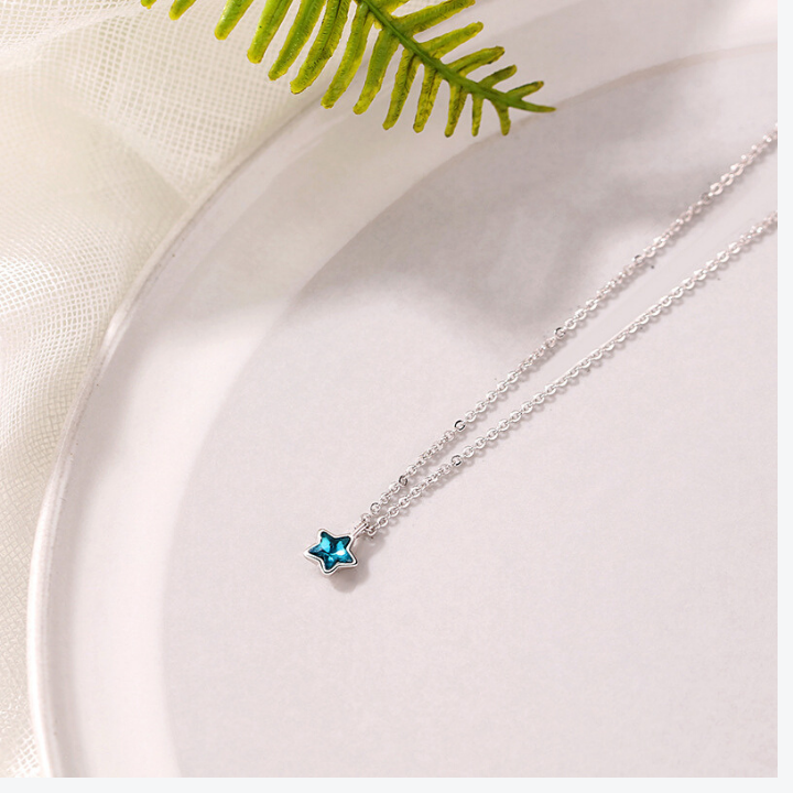 Vòng cổ bạc 925 Ngôi sao xanh ngọt ngào phong cách thời trang trẻ chung là thiết kế đơn giản, tinh sảo trong từng chi tiết. Mang đến sự sang trọng, quý phái. Phong cách thời trang, mang lại may mắn, tình yêu, niềm vui và hạnh phúc.
