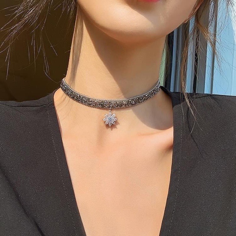Giới thiệu Vòng Cổ Choker Sillicon Mặt Hoa Đá Hàn Quốc