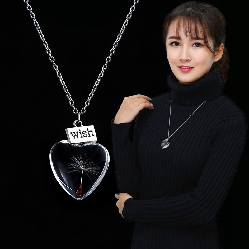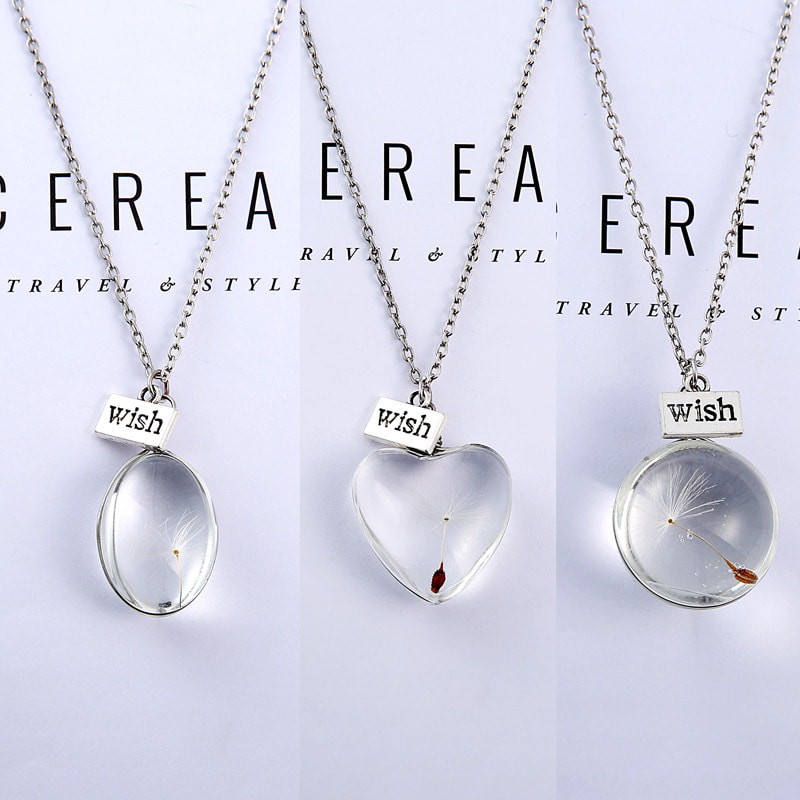 Giới thiệu Vòng cổ dây chuyển mặt thủy tinh hoa bồ công anh tự nhiên dễ phối trang phục