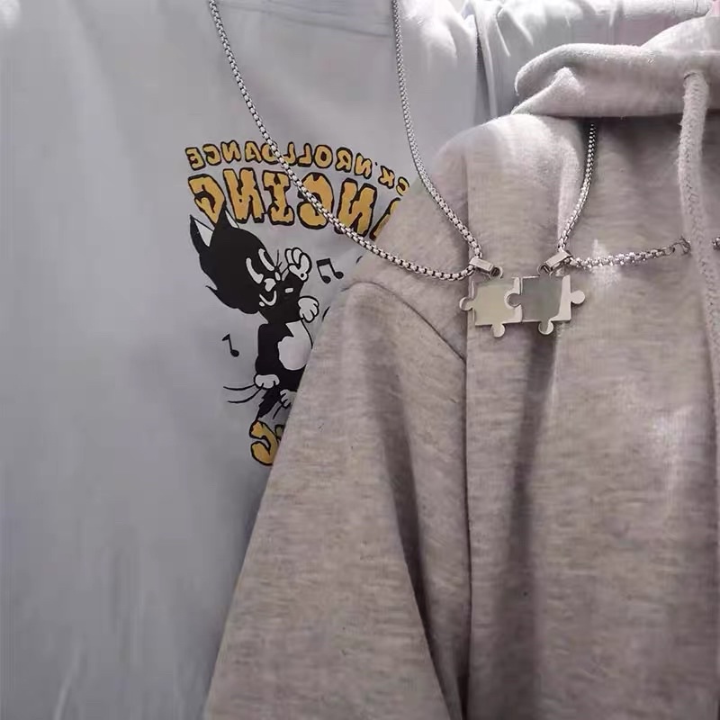Giới thiệu Dây Chuyền Đôi Mảnh Ghép Xếp Hình Unisex Couple Phong Cách Đơn Giản Thanh Lịch Hàn Quốc Thép Titan Thép Không Gỉ
