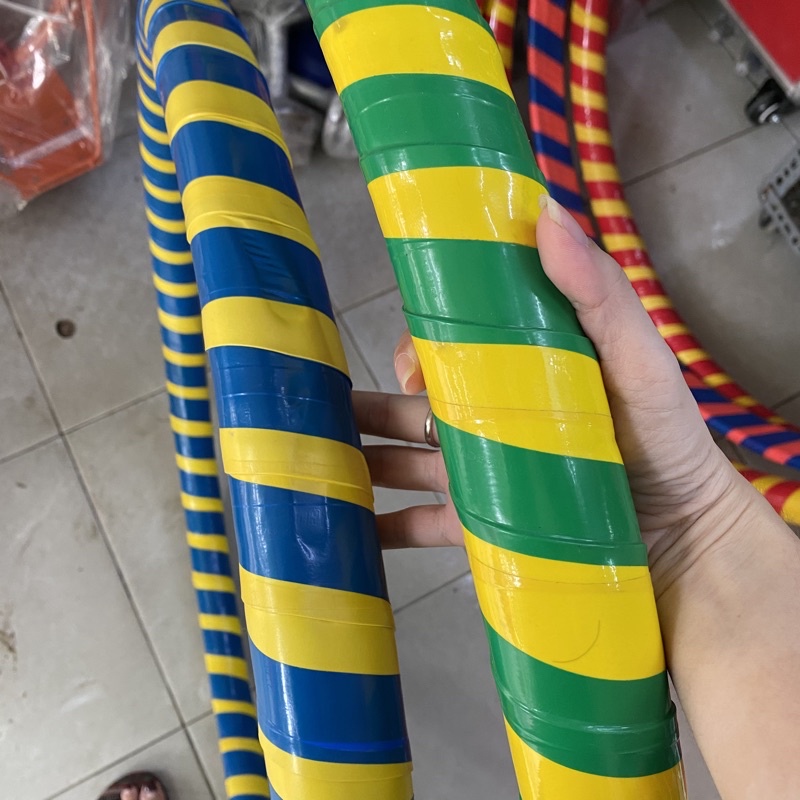 👉 1. chất liệu Ống nhựa dẻo: Cấu tạo gồm 3 lớp: bên trong là ống nhựa dẻo uốn cong, bên ngoài cuốn thêm 1 lớp cao su non và lớp ngoài cùng được ốp nhựa màu đẹp mắt để trang trí 🌼Vòng lắc giảm eo loại này giúp người lắc không bị đau eo hay thâm tím eo như các loại vòng khác trên thị trường. 🌻Lắc đều đặn ngày 2 lần 20 - 30p để có 1 vòng eo thon lý tưởng. 🌸Vòng lắc giảm eo đường kính 80 cm và 90 cm 🌸Trọng lượng nặng từ 1.5kg - 4kg