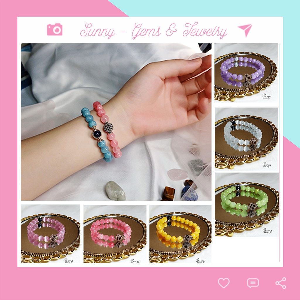 Vòng tay nữ SN003 * Kích thước: 8 ly * Chất liệu: tự nhiên cao cấp, sáng, phong cách nữ tính, trẻ trung. * Màu sắc: nhiều màu (Hồng, Xanh, vàng, trắng...) * Mệnh hợp: Tất cả các mệnh