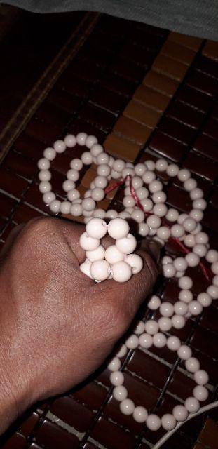 Chiếc vòng tay 18 hạt chuỗi màu trắng ngà loại 7ly bằng mê ka rất đẹp
