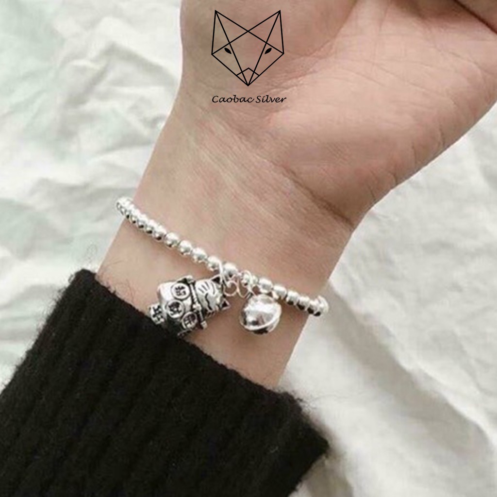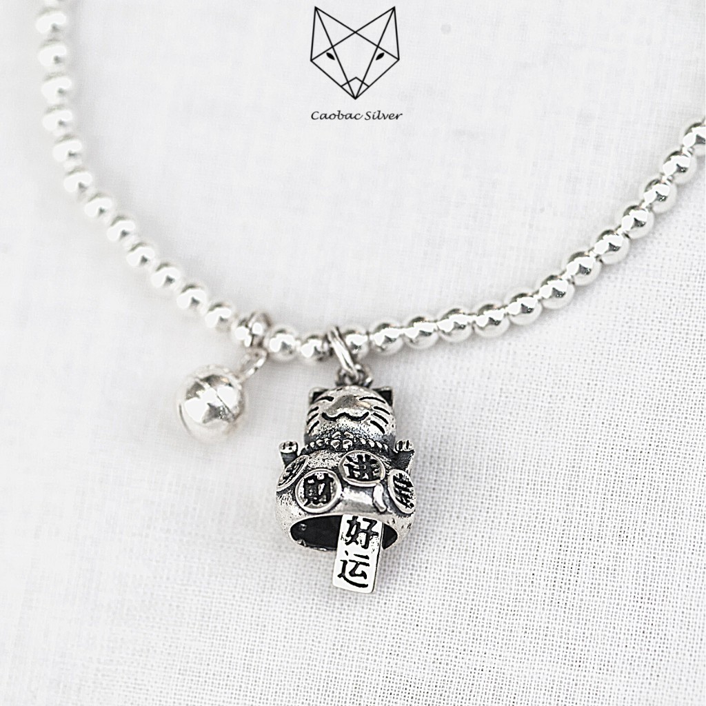 Giới thiệu Vòng Tay Bạc S99 CaoBac Silver Bi Charm Mèo Thần Tài May Mắn