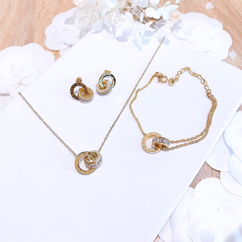 💎Combo (Lắc tay, Bông tai, dây chuyền) Carer TITAN cao cấp không gỉ sét bền đẹp, màu vàng gold chất liệu TITAN - HÀNG CAO CẤP Tên sản phẩm: Bộ Cater Màu sắc: vàng Chất liệu: titanium Kích thước: như ảnh Xuất xứ: Sx tại Trung Quốc Nhà SX: Shenzhen Bao’an District Hailun Ke Garment Factory Địa chỉ SX: 4th Floor, Building E1, Gesha Industrial Zone, Chancheng District, Foshan City, Guangdong, China