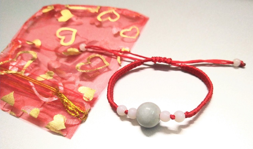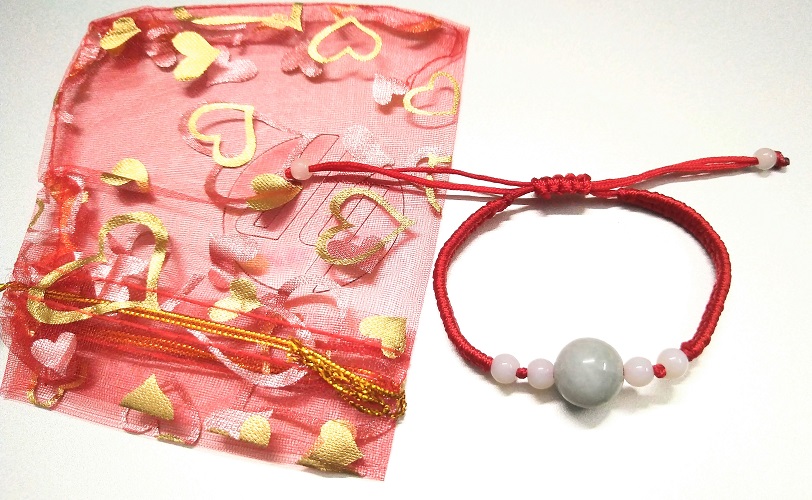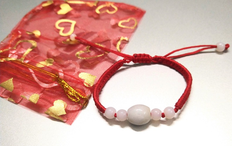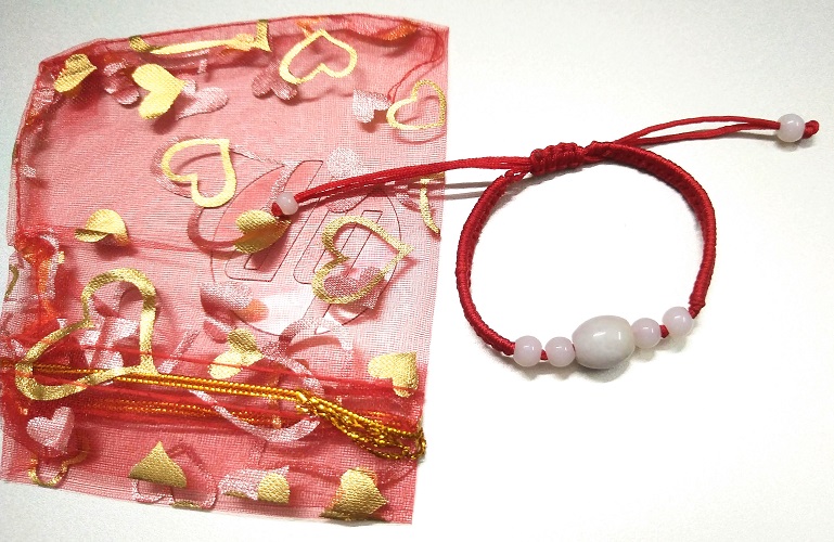 Vòng tay chỉ đỏ may mắn bình an kèm túi đỏ làm quà tặng - 1 hạt ngọc tròn đơn giản