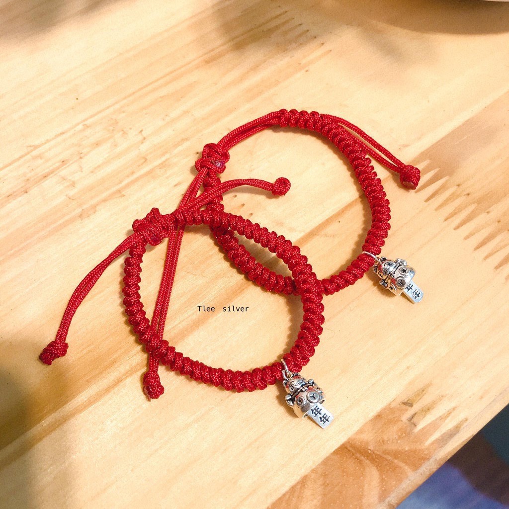 Giới thiệu Vòng tay chỉ đỏ mèo thần tài may mắn bạc Tlee bạc nguyên chất Dây tết chắc chắn
