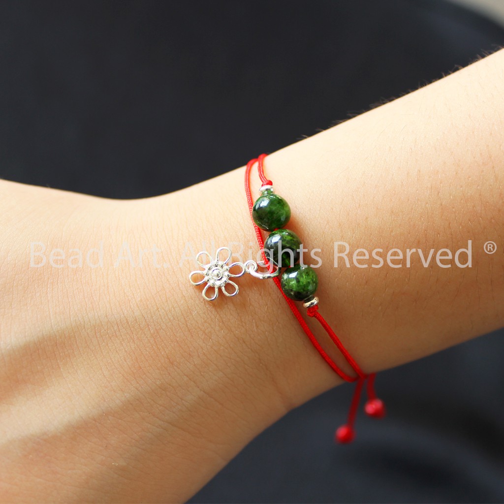 Giới thiệu Vòng Tay Dây (Chỉ) Đỏ Phối Diopside Xanh Lá Và Bạc 925, Vòng Tay Phong Thuỷ, Hợp Mệnh Mộc, Hoả S50 - Bead Art