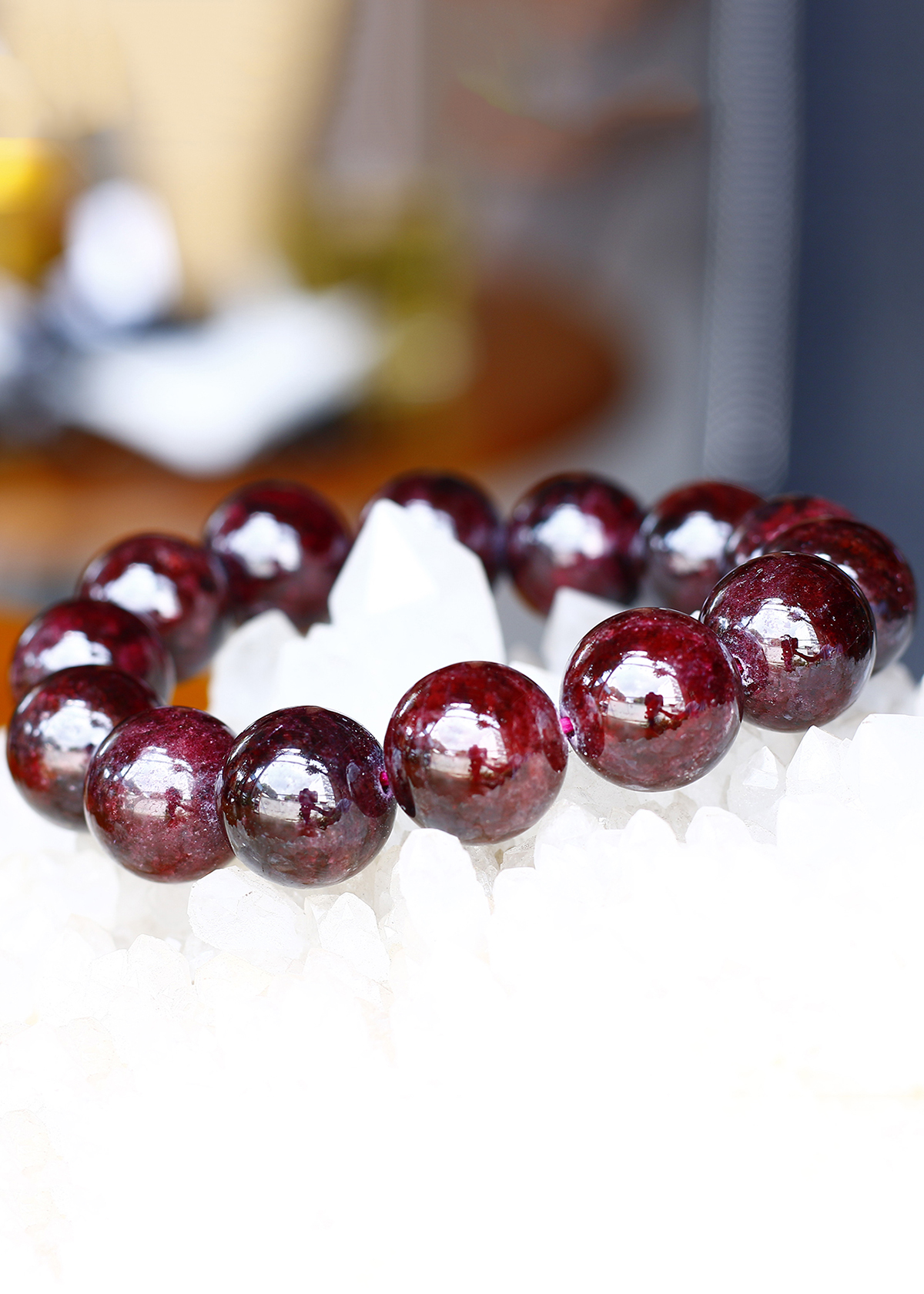 Garnet là một loại đá cực kì hấp dẫn, một trong 5 viên đá hộ thân của Pharaoh và Hoàng Đế Hy Lạp thời cổ đại. Tinh thể Garnet tên phát ra từ tiếng Latinh có nghĩa là quả lựu, ám chỉ màu đỏ mãnh liệt của nó giống như những hạt lựu lấp lánh, biểu tượng của quyền lực, may mắn và hạnh phúc.
