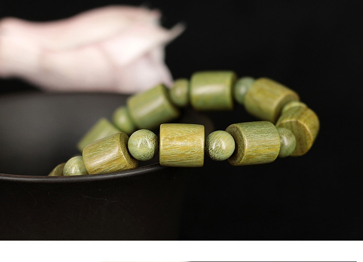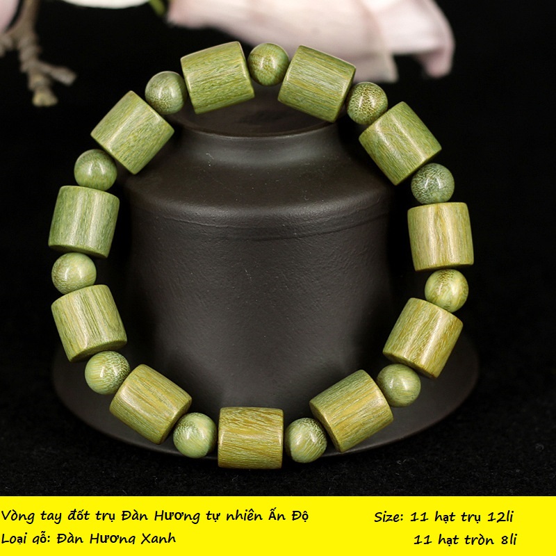 Vòng Tay Đàn Hương Xanh Ấn Độ 100% Tự Nhiên, Hạt đốt trụ size 12ly