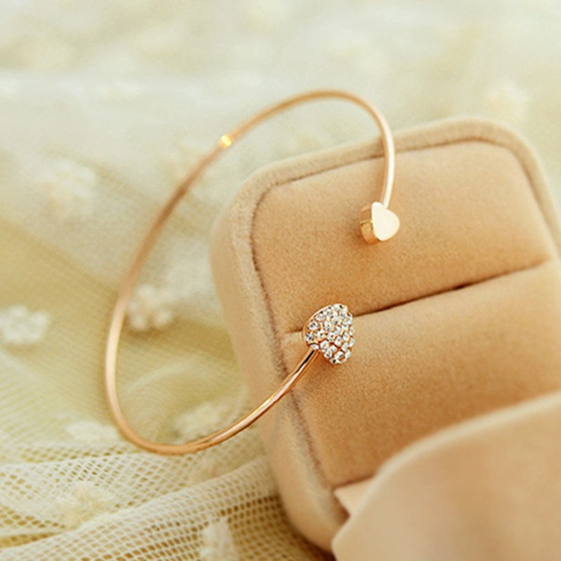 Giới thiệu Vòng tay hở mặt trái tim đính đá xinh xắn cho nữ (Hàng có sẵn)