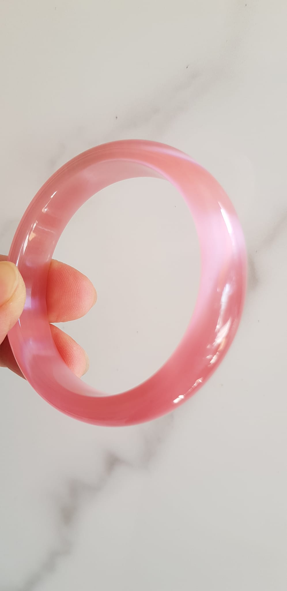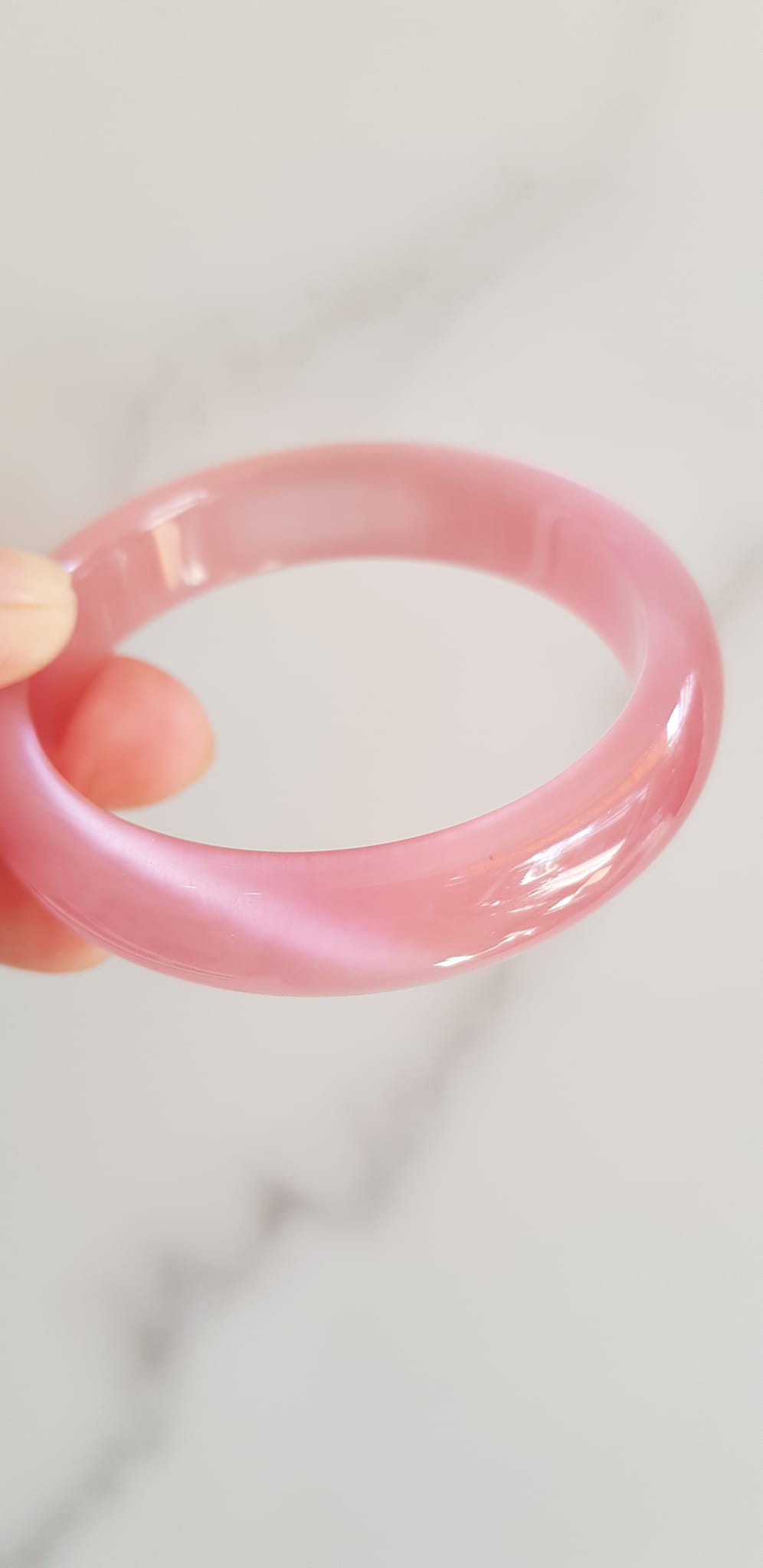 Vòng tay nữ đá mắt mèo hồng bản hẹ mới Ni 53mm x cao 13mm x dầy 7mm