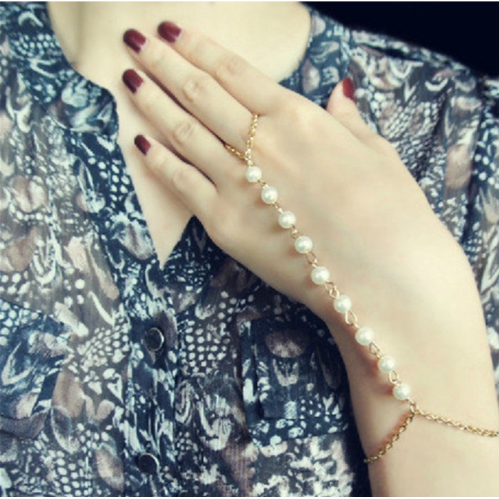 Giới thiệu Vòng tay nữ đính ngọc trai nhân tạo độc đáo - lắc tay nối nhẫn cá tính phụ kiện trang sức Hades.js