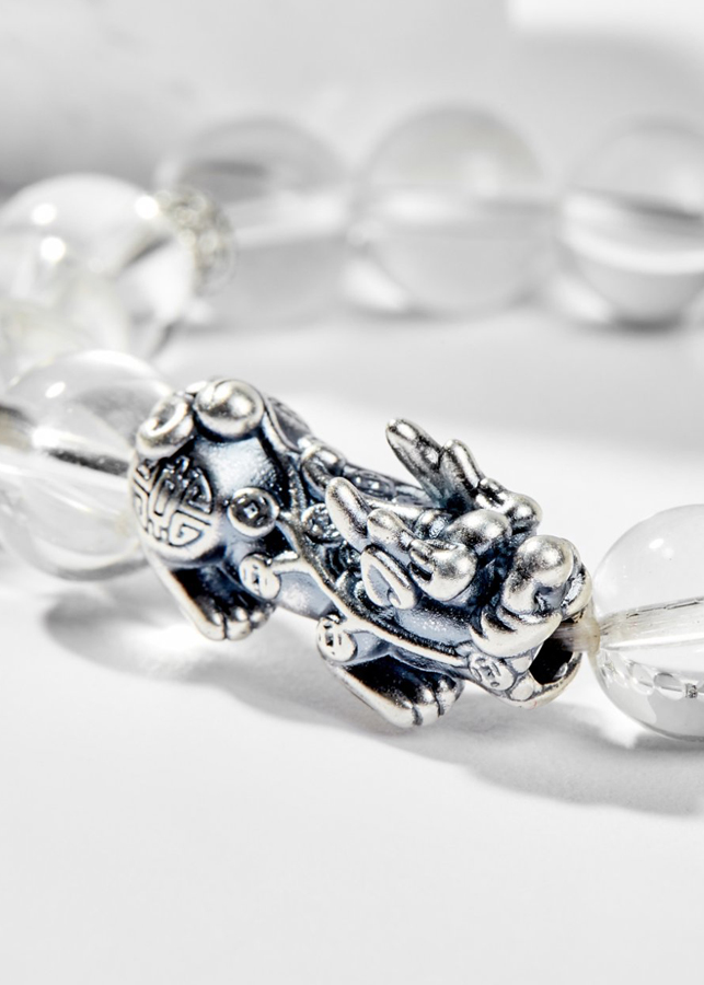 Từ lâu người ta đã biết đến đá thạch anh trắng được xem như là một sự ưu đãi của tự nhiên cho tâm trí của bạn trước sức ép của cuộc sống. Giúp giải tỏa căng thẳng. đưa cơ thể về trạng thái cân bằng. Đặc biệt, viên đá còn là sự lựa chọn hàng đầu của các doanh nhân để tăng khả năng thu hút tài lộc. Vòng Tay Phong Thủy Đá Thạch Anh Trắng Phối Charm Tỳ Hưu Bạc (10mm) Mệnh Kim, Thủy được làm từ đá thạch anh trắng và là vật phẩm phong thủy không thể thiếu trong bộ sưu tập của bạn.
