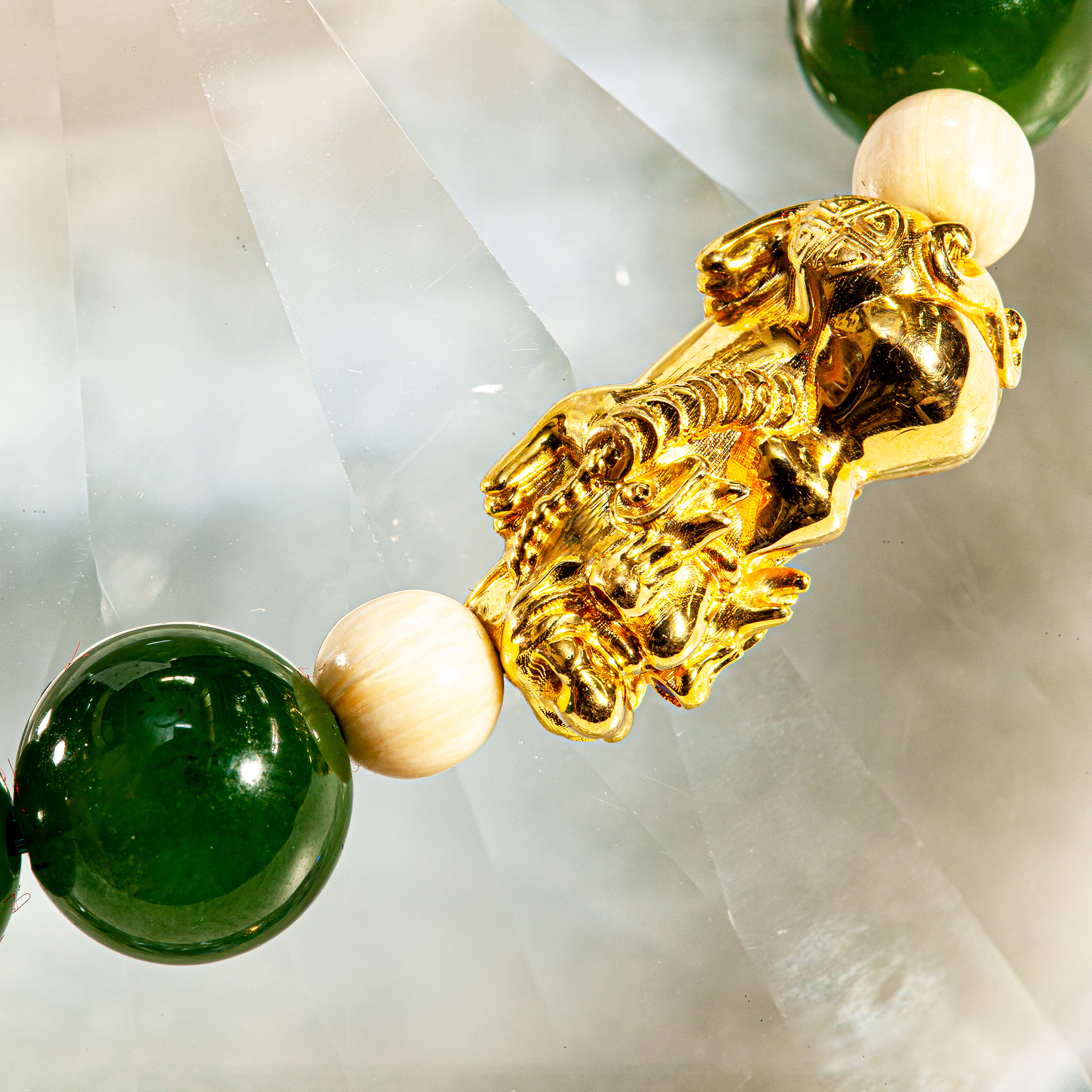 Ngọc bích mix tỳ hưu biểu tượng cho tầng lớp quý tộc, uy quyền và là viên đá cho sự bình an, tình yêu, hạnh phúc và tài lộc.
