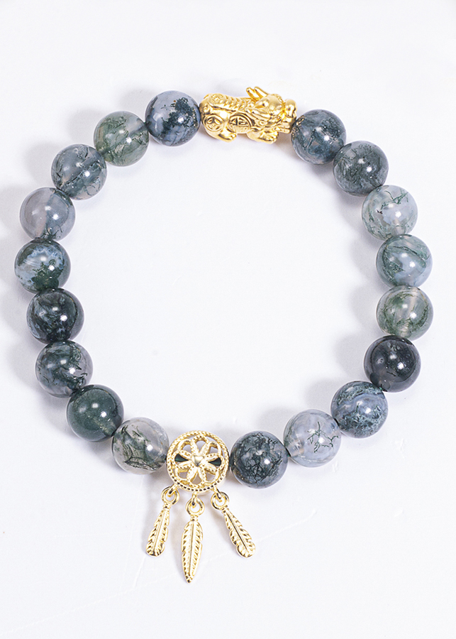 Từ lâu người ta đã biết đến đá băng ngọc thủy tảo giống như một sản phẩm vô cùng tuyệt vời khi kết hợp với thiền định để thanh tẩy tâm hồn. Từ đó giúp đem lại cho người sở hữu tài lộc, may mắn và bình an. Vòng Tay Phong Thủy Nữ Đá Băng Ngọc Thủy Tảo Phối Charm Dream Catcher Mạ Vàng 24K (8mm) Mệnh Mộc, Hỏa được làm từ đá băng ngọc thủy tảo.