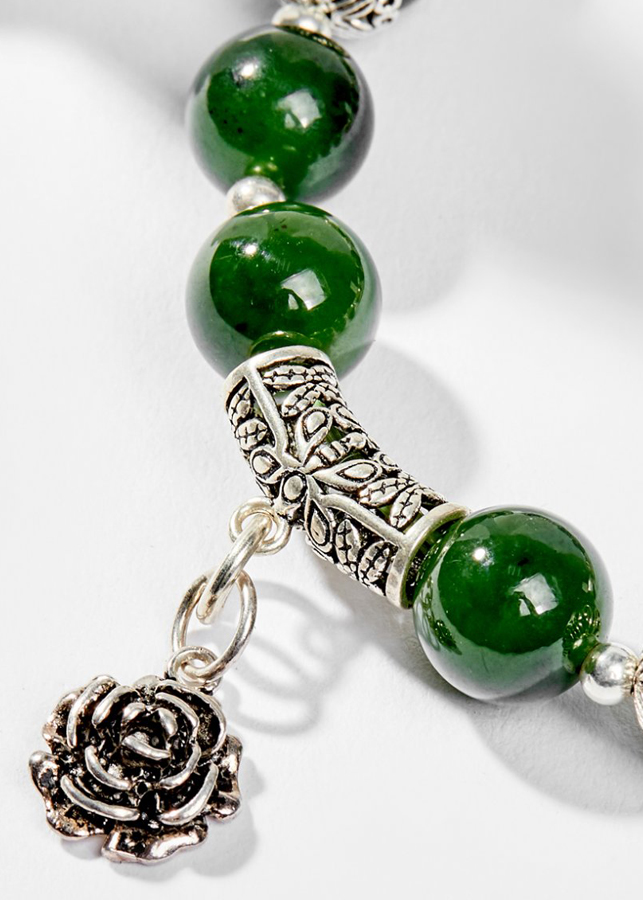 Từ lâu người ta đã biết đến đá Ngọc bích như một viên đá đại diện cho quyền uy Đế Vương, mang màu sắc thanh cao và quý phái. Giúp trấn tà, thu hút may mắn, thành toàn cho ước mơ của chủ nhân. Ngoài ra, đá Ngọc Bích rất có lợi cho sức khỏe của người đeo chúng, lâu dài có thể cải thiên tuổi thọ. Vòng Tay Phong Thủy Nữ Đá Ngọc Bích Phối Charm Hoa Bạc (10mm) Mệnh Mộc, Hỏa được làm từ đá Ngọc bích và là vật phẩm không thể thiếu trong bộ sưu tập đá quý của bạn.