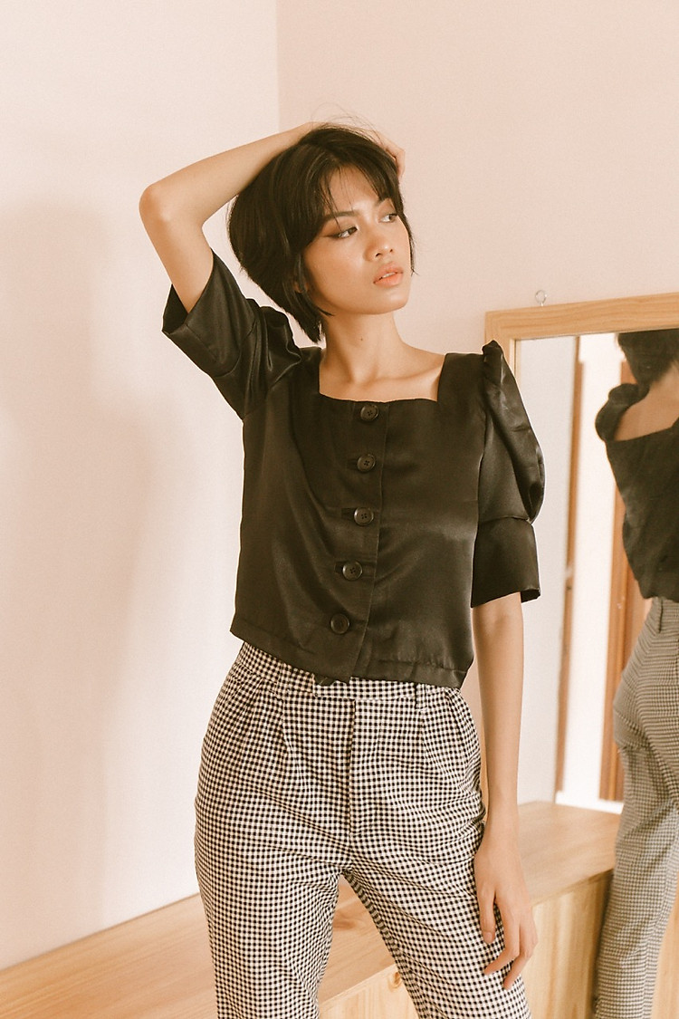 2. Áo sơ mi kiểu + Quần baggy + Giầy cao gót đen