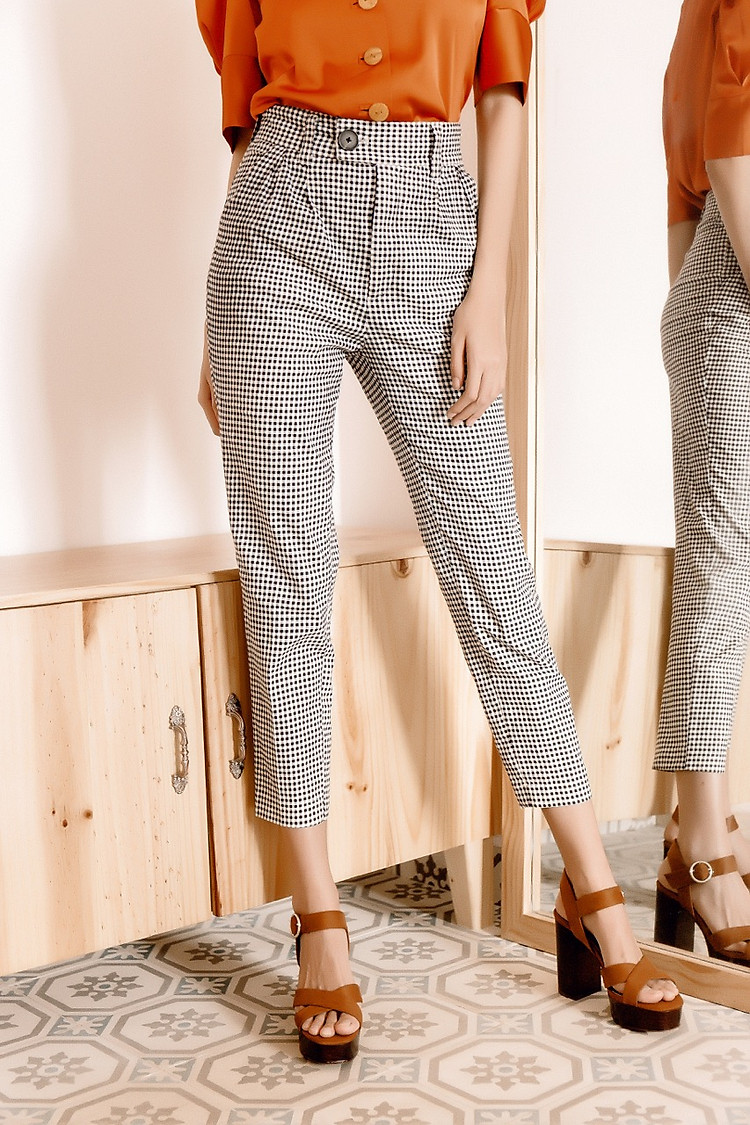 - Đứng đầu bảng trong danh sách đồ cần sắm của những nàng công sở chính là những chiếc quần Baggy soc caro kinh điển mà thanh lịch, cá tính để bạn luôn nổi bật trong mọi hoàn cảnh. Dễ dàng phối với áo sơ mi trắng, kem, vàng nâu chất liệu lụa, chiffon hoặc áo dây.