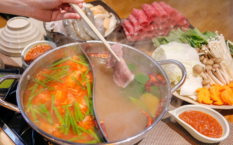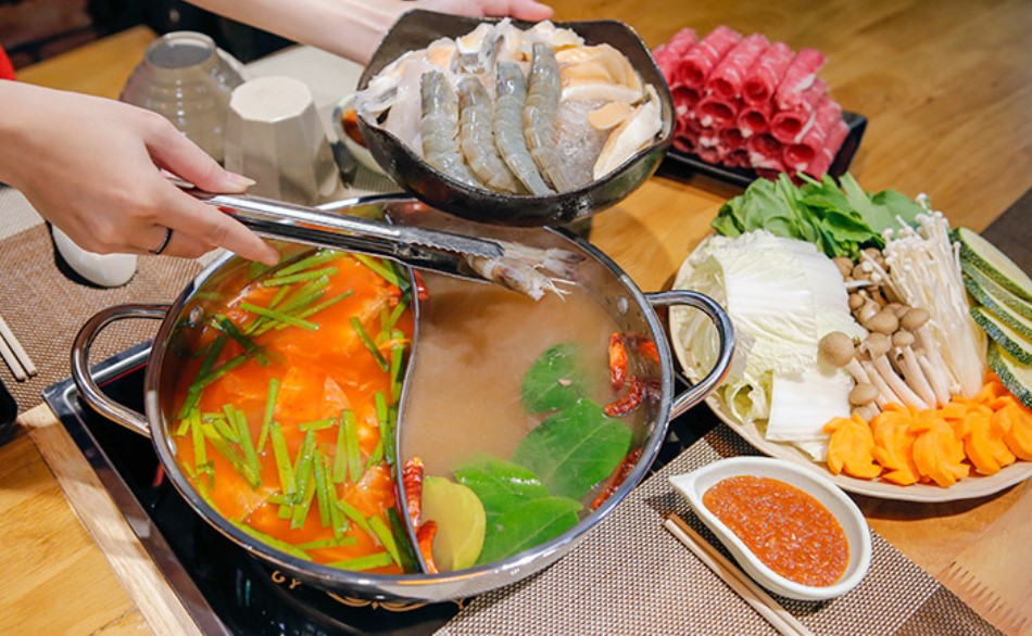 4 loại nước lẩu: lẩu kim chi, lẩu collagen, lẩu Tomyum và lẩu hải sản