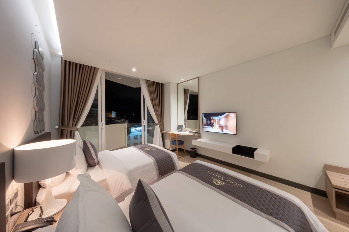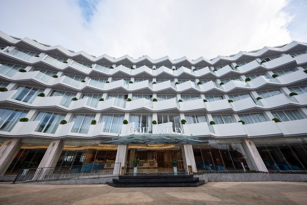 Thuộc dự án biệt thự Golf Valley hơn 20ha và tọa lạc ngay trung tâm thành phố Đà Lạt, Golf Valley Hotel 4* Đà Lạt mang đẳng cấp 4 sao không chỉ gây ấn tượng mạnh mẽ bởi thiết kế hiện đại theo lối gấp khúc độc đáo với hệ thống 164 phòng ở có ban công thoáng đãng, nội thất sang trọng mà còn nhờ tầm nhìn thông thoáng bao quát cả thành phố.