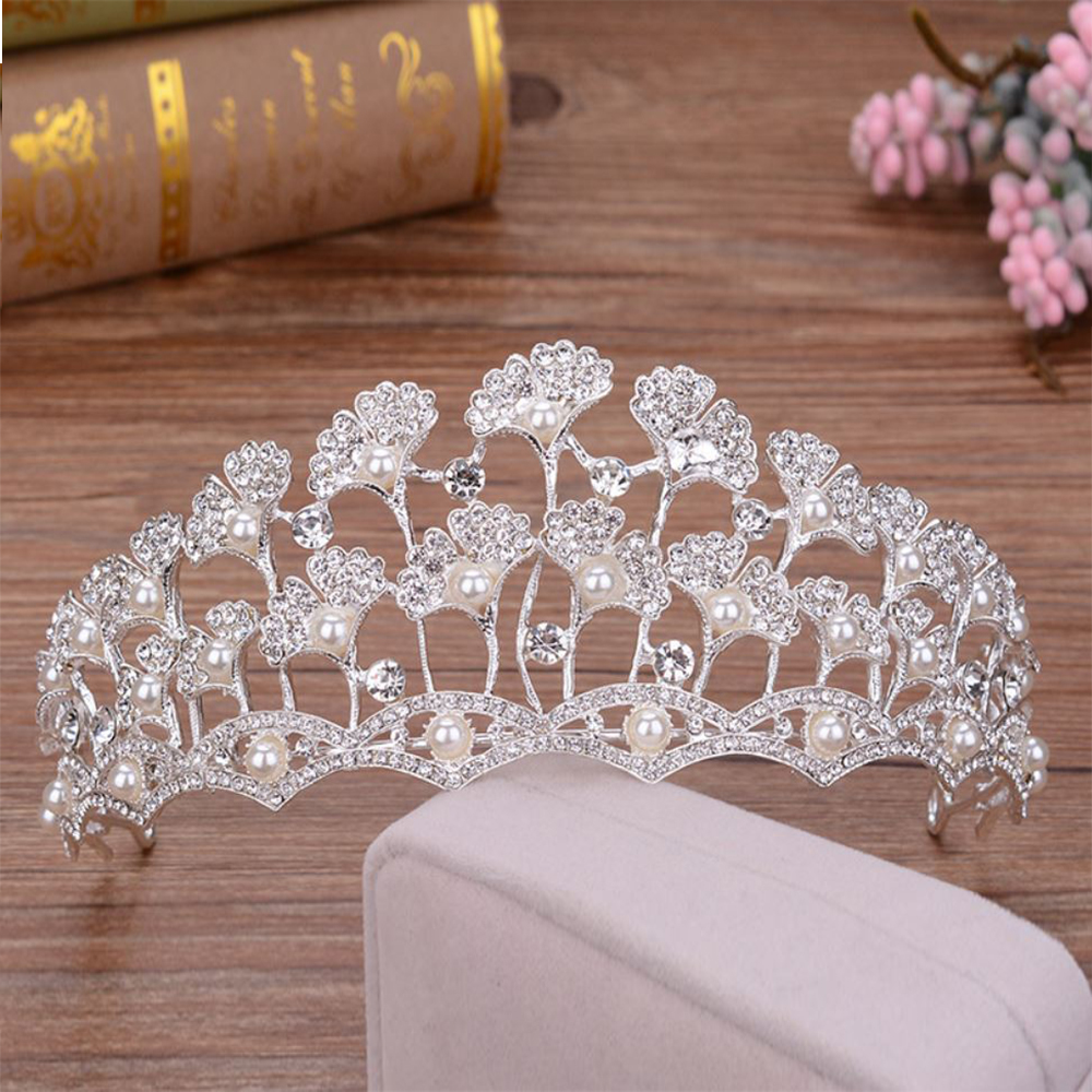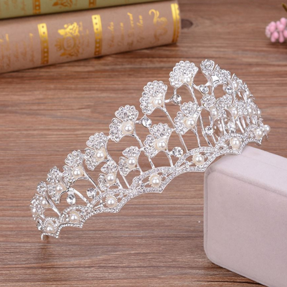 Thiết kế tỉ mỉ và tinh tế với họa tiết hoa lá đính đá nhỏ lấp lánh dọc theo vương miện, đầy quyến rũ, đáng yêu và thanh lịch, kết hợp trang trí hạt trai nổi bật, tạo nét cá tính.