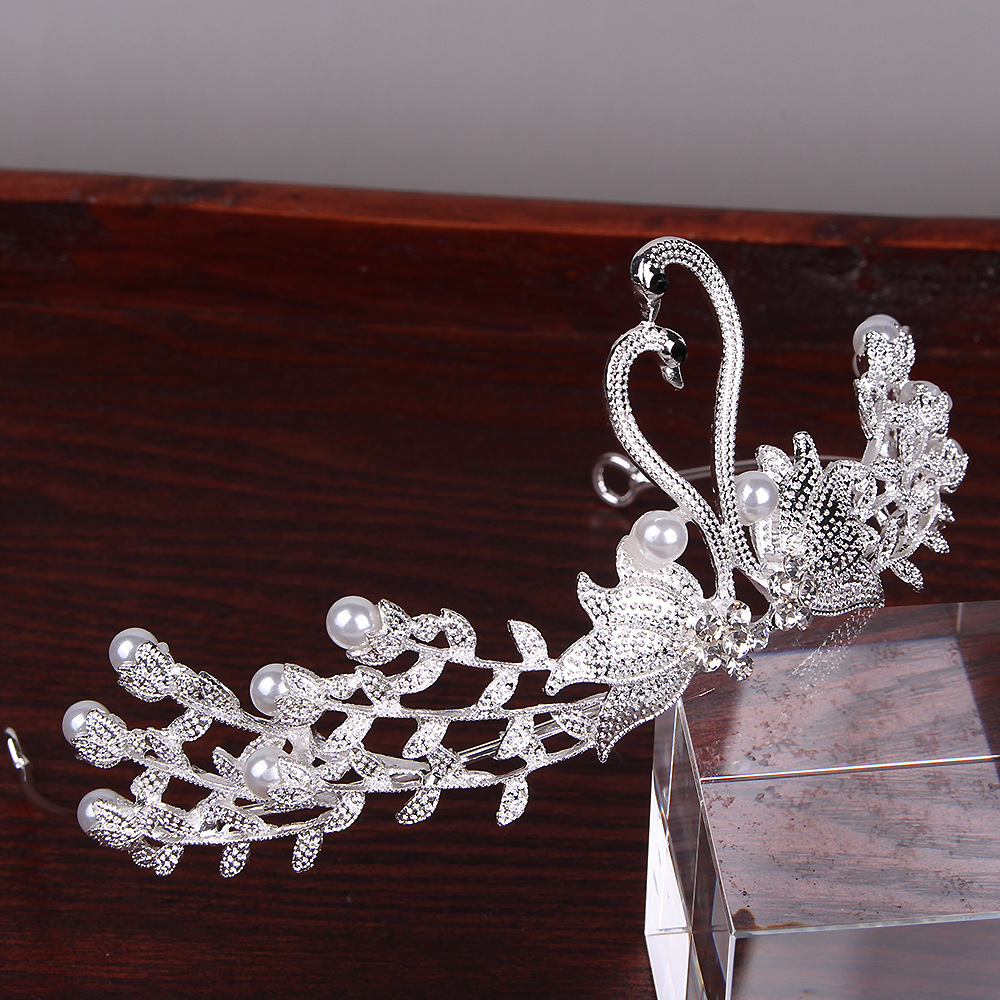 Thiết kế tỉ mỉ và tinh tế với họa tiết Chim Thiên nga, cân đối, hài hòa, đính đá nhỏ lấp lánh theo đường nét của vương miện, đầy quyến rũ, đáng yêu và thanh lịch, kết hợp trang trí Hạt Trai Phong cách trẻ trung, Nổi bật, điểm nhấn ấn tượng, tạo nét cá tính.