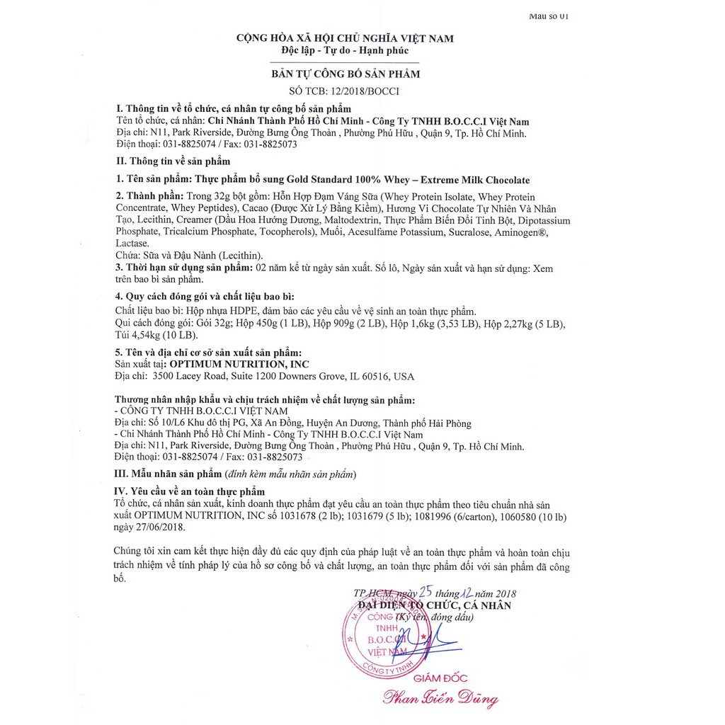 Nếu bạn cần tìm một sản phẩm bổ sung Protein đáng tin cậy - Whey On Gold Standard hoàn toàn đáp ứng. Optimum 100% Whey Protein là sản phẩm bán chạy nhất Thế Giới trong thập kỷ với nhiều năm liên tiếp ! Sản phẩm 100% Whey Protein là thực phẩm bổ sung Protein hiệu nghiệm. Bạn sẽ có 24 gam Protein chất lượng cao và chỉ 1 gam chất béo sau mỗi lần dùng. 100% Whey Protein được làm từ Microfiltered Whey Protein Isolates, Ion Exchange Whey Protein Isolates, Ultrafiltered Whey Protein Concentrate, và Hydrowhey Hydrolyze Whey Peptides. 100% Whey Protein chứa chất men hoá Lactase và Aminogen giúp hấp thụ tốt Protein và giúp những cá nhân có vấn đề với đường Lactose dễ dàng sử dụng sản phẩm này (Dị ứng Đường sữa Lactose gây lạnh bụng, tiêu chảy). 100% Whey Protein rất dễ hoà tan và có hương vị tuyệt hảo khi hoà với sữa hoặc nước lọc. Nếu bạn muốn thêm hương vị, trộn 100% Whey Protein với sữa chua, sinh tố…