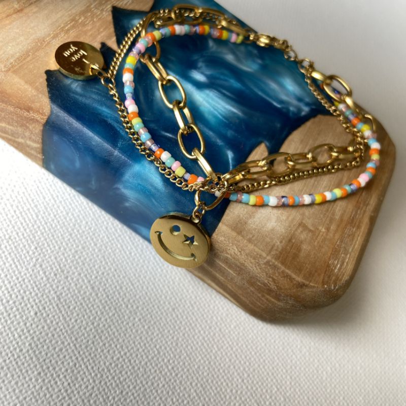 -Màu sắc: - Vòng Smile - Là các mẫu vòng được tạo nên từ những hạt Miyuki nhập Nhật đầy đủ các màu sắc và kết hợp với các mẫu ch. arm vàng, bạc, hoặc đồng xịn, không bị đen hay gỉ sắt , đa dạng về mẫu mã , được chăm chút tỉ mĩ bởi bàn tay của các bạn nhân viên Whiteline, thích hợp cho các Baes yêu thích style trẻ trung, năng động, phù hợp để phối với tất cả các kiểu vòng khác của Whiteline.