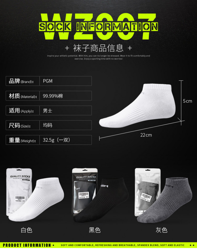 - Tất thiết kế dạng cổ ngắn, có thêu logo của hãng PGM bắt mắt.