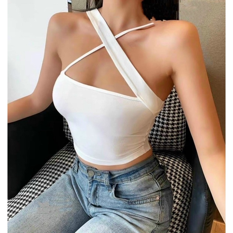 Giới thiệu Xả hàng - Áo yếm chéo dây quây ngang ngực, Áo kiểu dáng ôm sexxy co giãn AK0016 - NhiNhi Shop