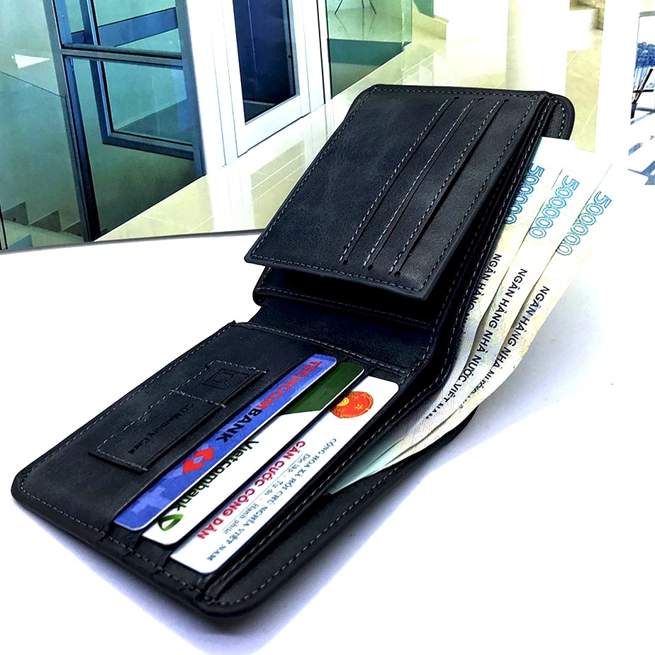 Kích thước bóp ví nam 11.5cm x 9.5 cm (dài x rộng) thoải mái cho việc để các giấy tờ tùy thân và thẻ ATM