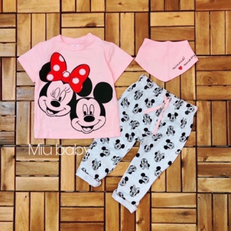Thời trang trẻ em & trẻ sơ sinh > Quần áo bé gái > Com lê & đồ bộ || xả hàng sét áo micky hồng quần dài cho bé( không yếm)