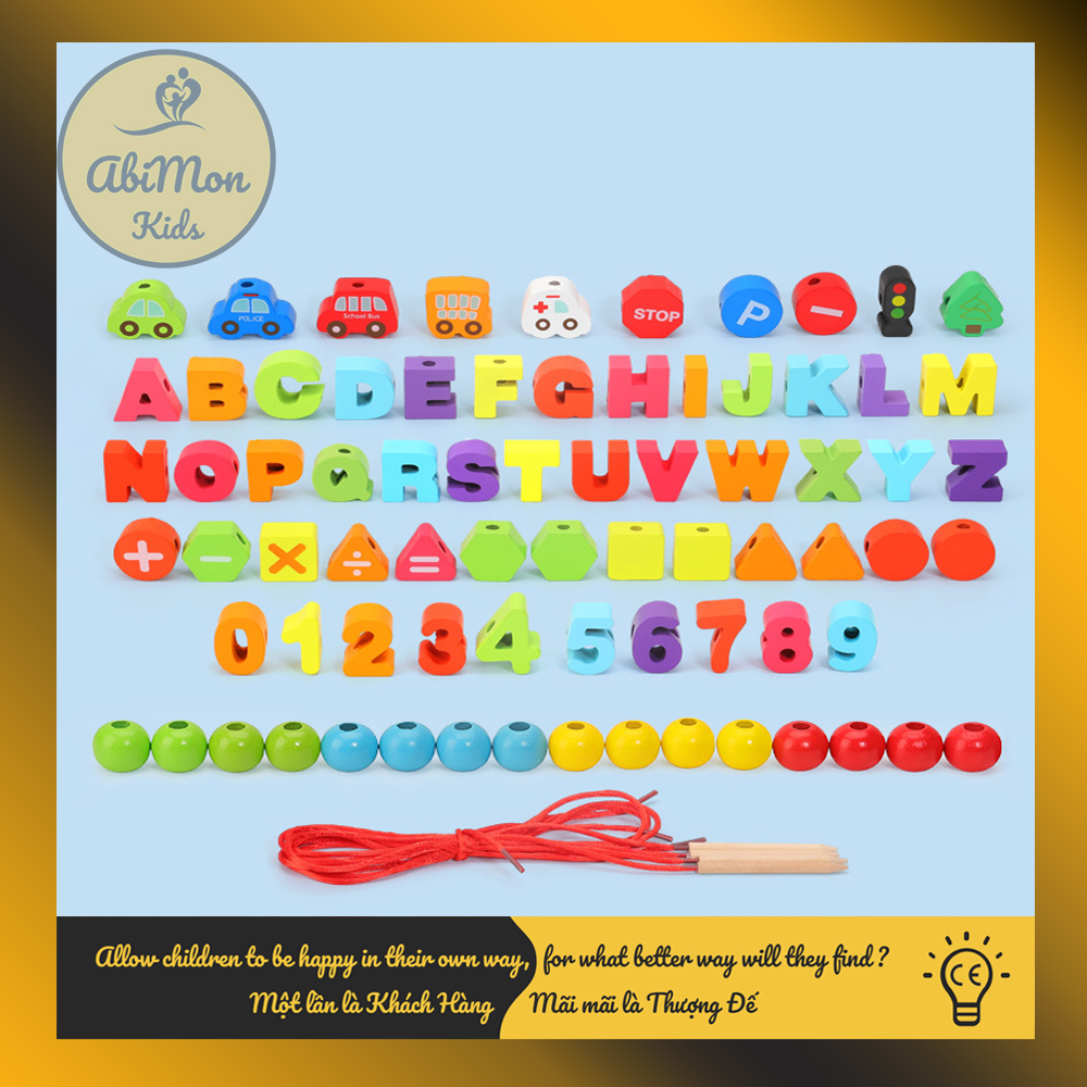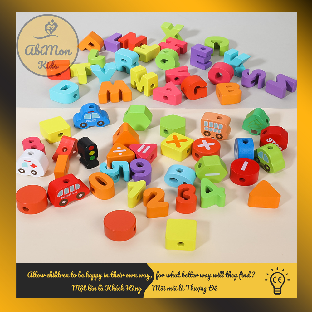 BỘ XÂU HẠT BẰNG GỖ CHO BÉ (75 CHI TIẾT) - SẢN PHẨM MONTESSORI LOẠI 1 CAO CẤP