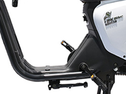 Để chân và bàn đạp Xe đạp điện DKbike Sparta được trang bị để chân nhỏ gọn đặt ở phần thân dưới của xe, tạo tư thế vận hành thoải mái tối đa cho người điều khiển, bố trí song song hai bên để chân là bàn đạp để người sử dụng có thể lựa chọn chế độ vận hành xe trong quá trình sử dụng. Phía dưới để chân là chân chống nghiêng và chân chống giữa giúp người sử dụng dễ dàng cố định chiếc xe trong quá trình vận hành trong thực thế. |