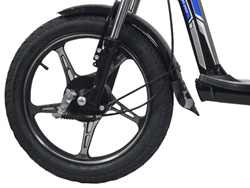 Vành đúc hợp kim phay sáng Xe đạp điện EV S1 sở hữu vành đúc hợp kim 5 chấu hiện đại với công nghệ tiện CNC phay sáng hiện đại. Ở tâm của bánh xe là thắng cơ an toàn được đồng bộ với các tay thắng phía trên giúp người điều khiển dễ dàng làm chủ tốc độ. bao quanh bánh xe là lốp cao su có ruột vành 18inh thông dụng có thể dễ dàng thay thế trong quá trình sử dụng. Nối toàn bộ cụm bánh trước với thân xe là giảm sóc lò xe êm ái. |