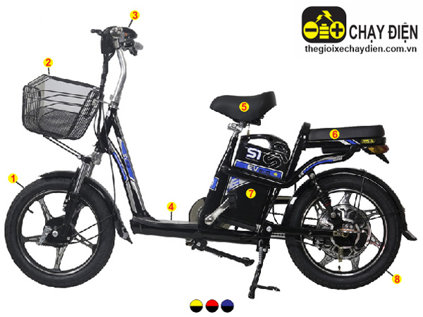 Thiết kế đơn giản và hiện đại Xe đạp điện EV S1 có thiết kế đơn giản và hiện đại với phần khung sườn chõe khỏe khoắn và thời trang, trang trí bên ngoài là một lớp team nước phù bóng với 3 màu sắc vàng đen, xanh đen, đỏ đen. Ngoài ra xe còn được trang bị báo chống trộm để người điều khiển có thể vận hành từ xa một cách dễ dàng và đảm bảo an toàn tối đa khi sử dụng chiếc xe. |