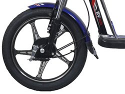 Cụm bánh trước với giảm sóc êm ái Xe đạp điện EV S2 có cụm bánh trước được trang bị giảm sóc êm ái thừa kế và phát triển từ các thiết kế của xe gắn máy giúp xe vận hành qua các dạng địa hình một các dễ dàng. Vành đúc hợp kim phay sáng độ bền cao, chống ô xi hóa tạo ấn tượng ngay lần đầu tiếp xúc với nét khỏe khoắn và hiện đại. Thắng cơ lớn ở tâm bánh xe đồng bộ hoàn toàn với cụm tay thắng phía trên giúp người điều khiển dễ dàng làm chủ tốc độ khi vận hành trong quãng thời gian dài |